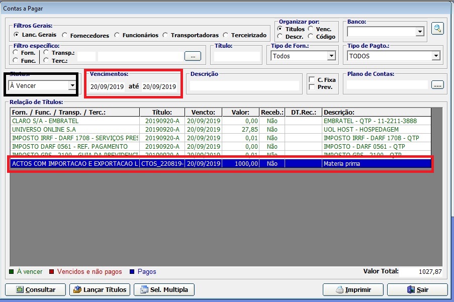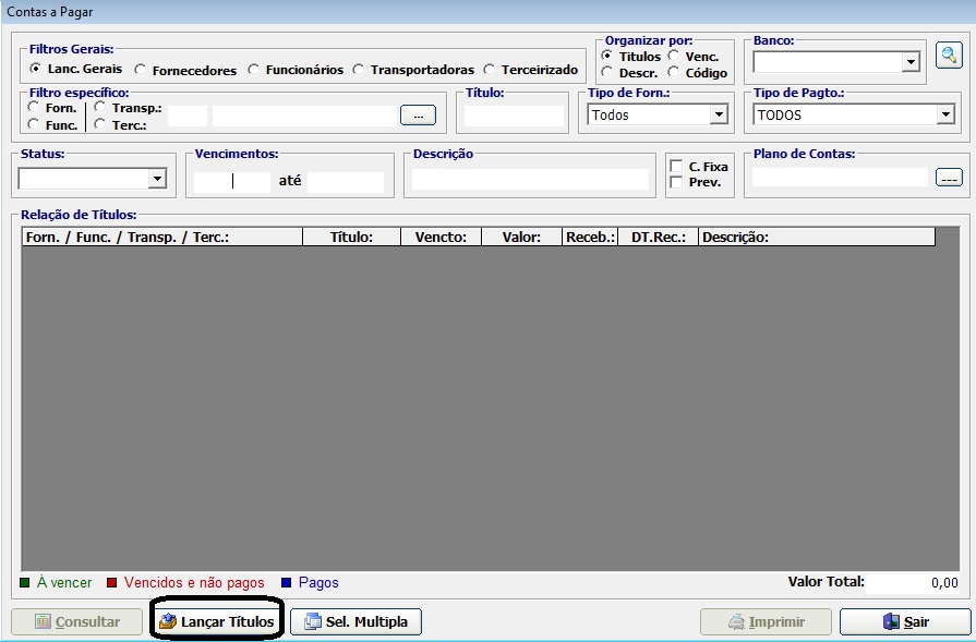 Clique em: Contas a Pagar – Está é a principal tela onde realizaremos diversas funções como: