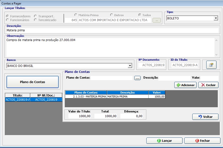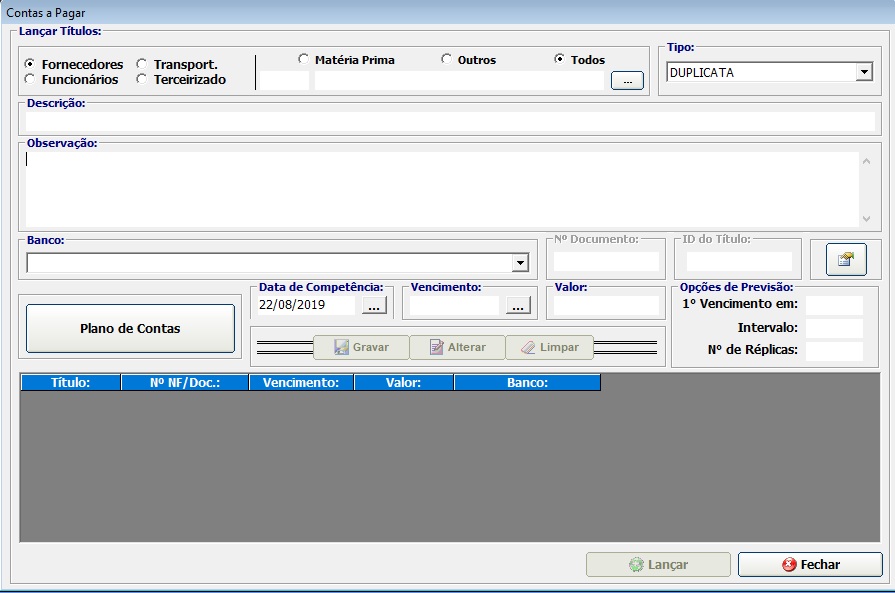 Observação.: Este Tipo de Pagamento deve ser criado antes do Lançamento "Títulos" temos um Faq sobre o assunto.