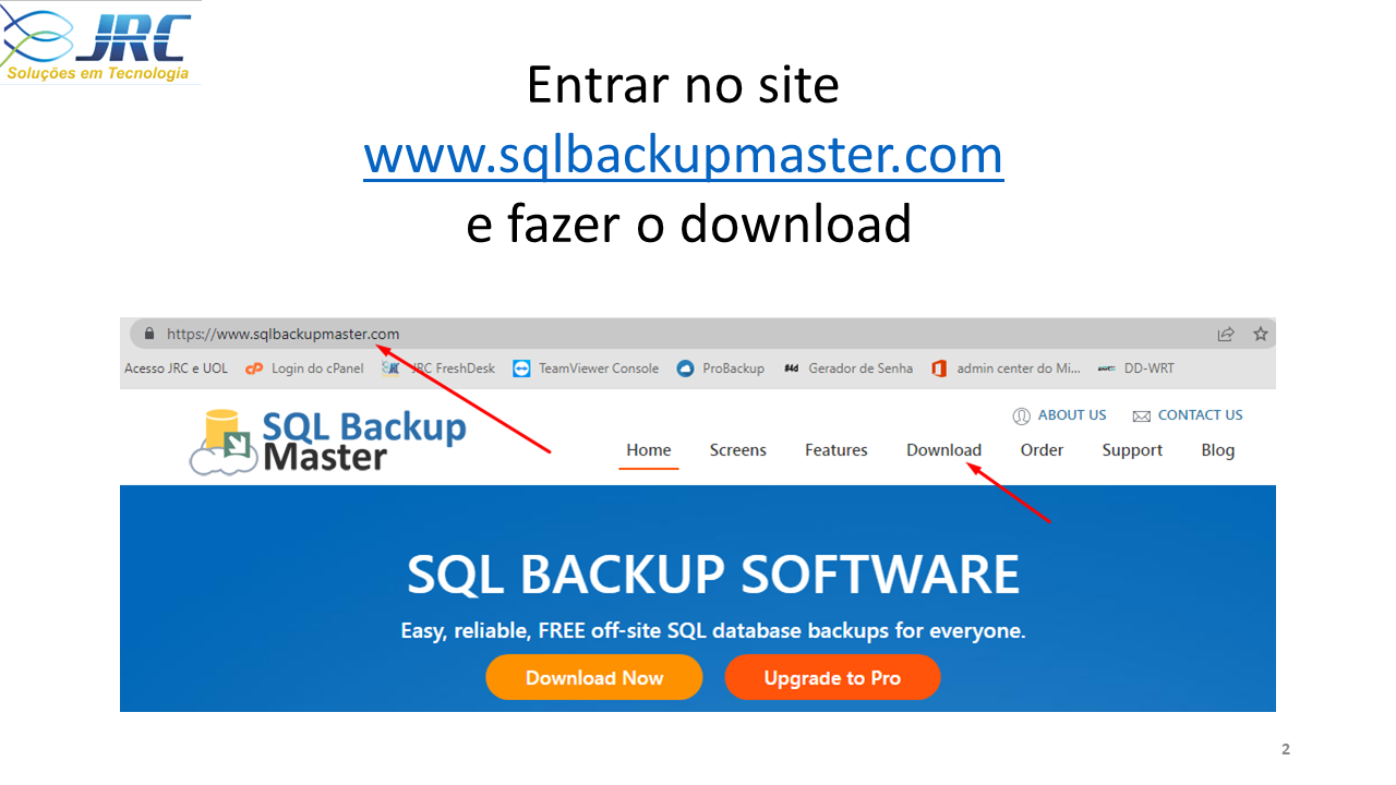 Esta ferramenta o SQL BACKUP MASTER é gratuita e sera utilizada para fazer o backup do SQL de forma agendada, protegendo os dados do cliente que não possui uma estrutura de TI ou backup da JRC em nuvem.